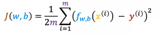 Cost Function J_wb (비용함수, 손실함수) also called squared error cost function **w에 대한 함수 , f는 x에 대한 함수!!**