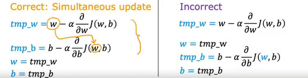 - if W already minimum, New update W = w , d/dw(J_wb) = 0 (slope = 0)