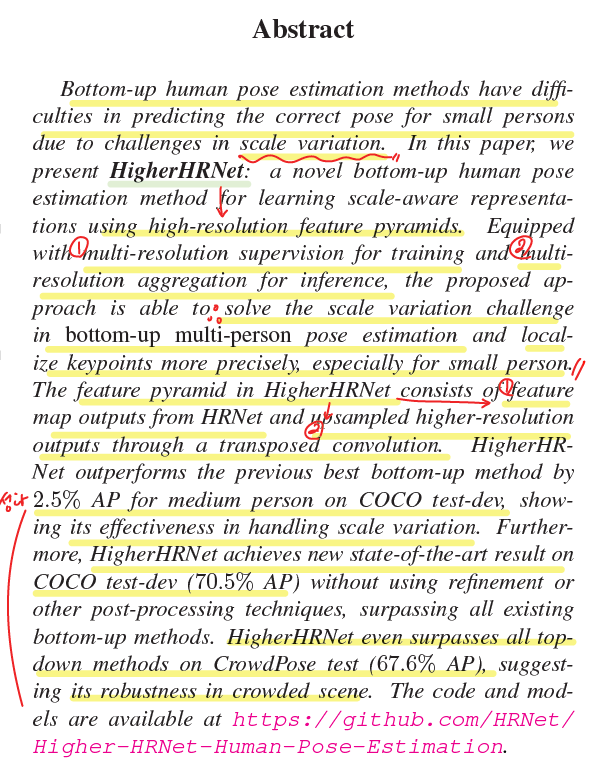 2. small person 인식에 유리한 scale aware high resolution heatmap을 generate하는 HigherHRNet을 구현