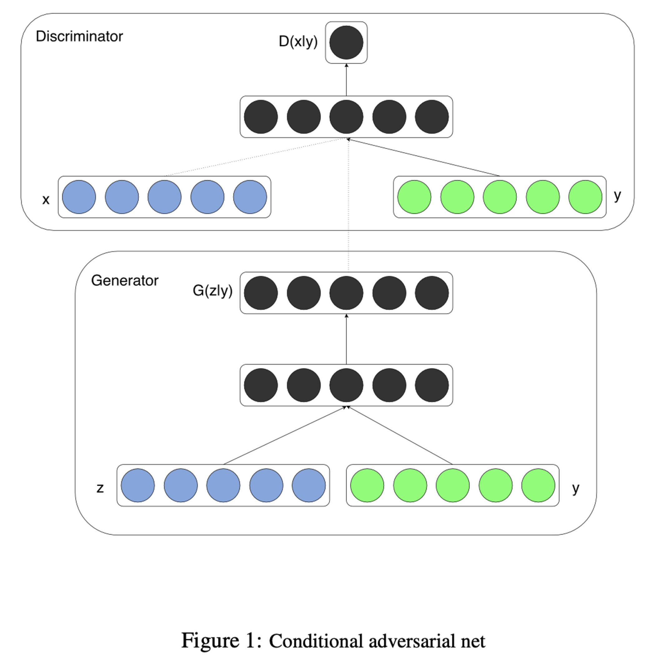 - Discriminator에선 x와 y를 입력과 Discriminative 함수로 나타냄 (embodied 되어있음)