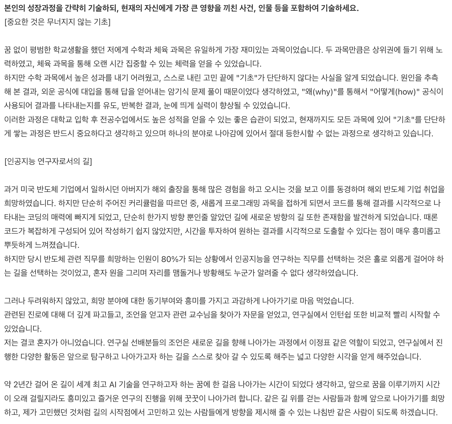 아무래도 여기까지는 큰 고민없이 작성하실 것 같으니, 작성한 자소서로 바로 넘어가겠습니다.